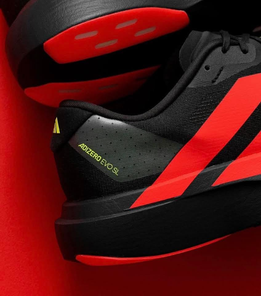 The Adidas Adizero Evo SL in Carbon/Lucid Red is a lightweight, high-performance running shoe inspired by the Adizero Pro Evo 1, featuring a breathable mesh upper, a full-length Lightstrike Pro midsole for responsive cushioning, and a Continental Rubber outsole. It is designed for fast, everyday training and race days .
