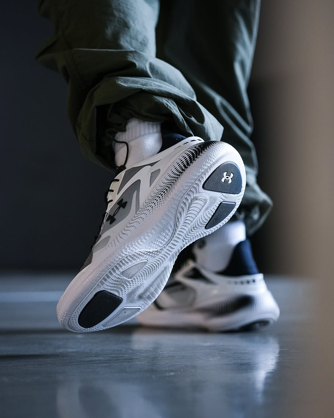The sneaker in your image is the Under Armour Echo SlipSpeed™ in the "Black/White" colorway. Design: A bold, sculpted silhouette featuring a multi-layer translucent upper made of breathable monofilament mesh. Technology: It utilizes full-length UA HOVR™ cushioning for a smooth ride and high energy return.
